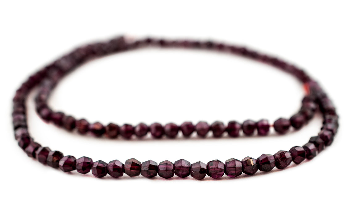 These gorgeous Garnet beads are an excellent addition to almost any design project. These Garnet gemstone beads have a truly unique deep purple shade which is sure to stand out from the crowd. The faceted round shape of these beads will add an extra sparkle and visual appeal to jewelry pieces when they catch the natural light. Each bead measures about 5-6 x 5-6mm with a hole size of approximately 1mm. You will receive a full strand measuring roughly 16". Grab a strand for yourself today and use these beautiful faceted gemstone beads to make stand out necklaces, bracelets, earrings and more.