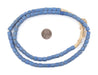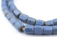 These antique glass beads are traditionally referred to as "Russian Blues." Each light blue bead has five faceted sides, and measures approximately 8 x 7mm, with a 3mm hole. Strands range between 26 inches to 28 inches in length. Shade of blue may vary with some strands darker then pictured. Beautiful antique beads at a great price!