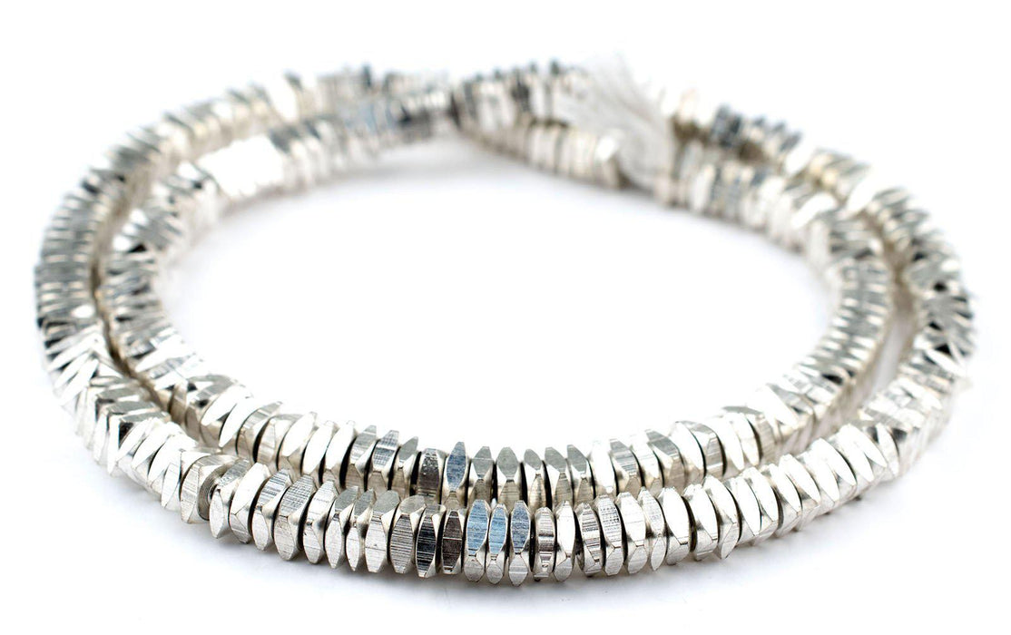 Take a look at this great strand of white metal beads fashioned in a faceted shape. Each strand is 25" inches long with approximately 125 beads measuring 2-3 x 7mm diameter. These great beads are highly versatile and may be used as spacers or accents in your unique designs. A great addition to your beading toolkit!