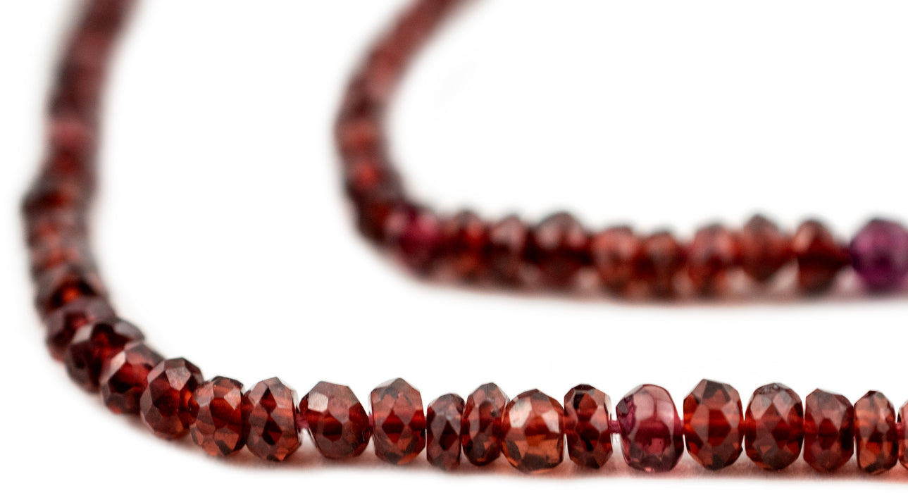 These Red Garnet Beads have a beautiful clarity and shine to them. This natural gemstone is known for its strong durability. Each bead is cut and polished for a smooth light catching finish. Ideal for stringing, earrings, and pendants, these classic beads will not disappoint. Each bead measures approximately 3 x 4mm with a hole size of approximately 1mm. You will receive a full strand measuring approximately 14". With a rich red color, these Spessartine Garnet Beads are sure to make any jewelry design look sophisticated and timeless.