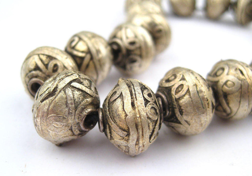 Fancy Ethiopian White Metal Bicone Beads (13x15mm)