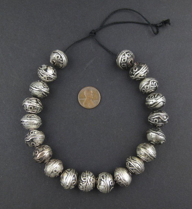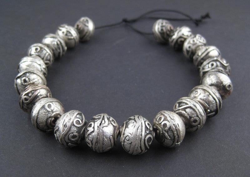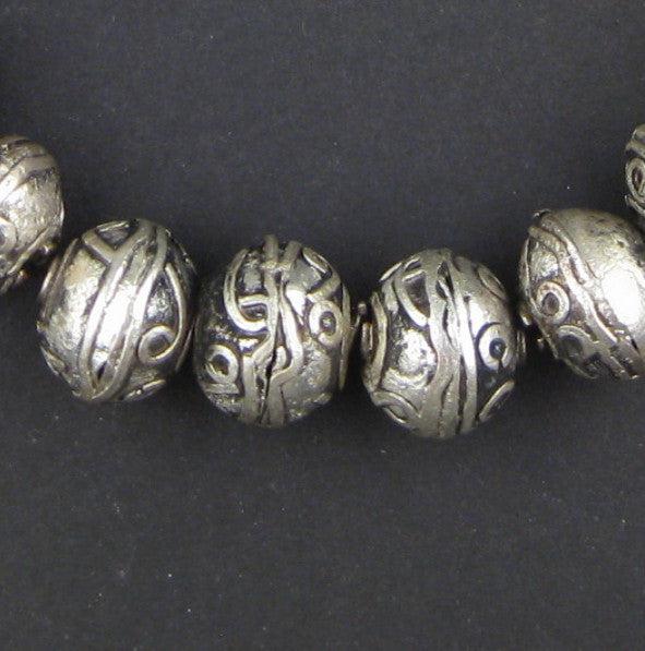 Fancy Ethiopian White Metal Bicone Beads (14x16mm)