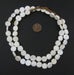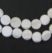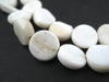 Admire the detail of these unusual beads fashioned by hand in a nice flat circular shape from the natural shell of the ocean conch. The material for these unique beads is said to have been traded from the Bay of Bengel north towards the Himalayan mountains. No two beads are alike however beads measure approximately 4 x 11mm diameter with hole size of . The length of strand measures about 28â€. Each strand is unique and may vary slightly from photo. Beads may be used in your own special jewelry design however the beads have been nicely strung and the strand may also easily be worn as a necklace. Limited quantity available.