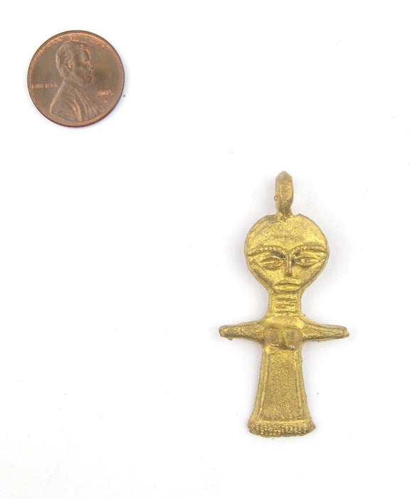 Here we have a beautiful African brass pendant in the shape of a flattened Fertility Doll. The pendant measures 51mm in length from top to bottom, and approximately 25mm in width. This African pendant is made using the "Lost Wax" technique and comes from Ghana.