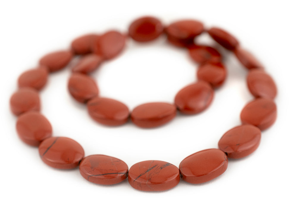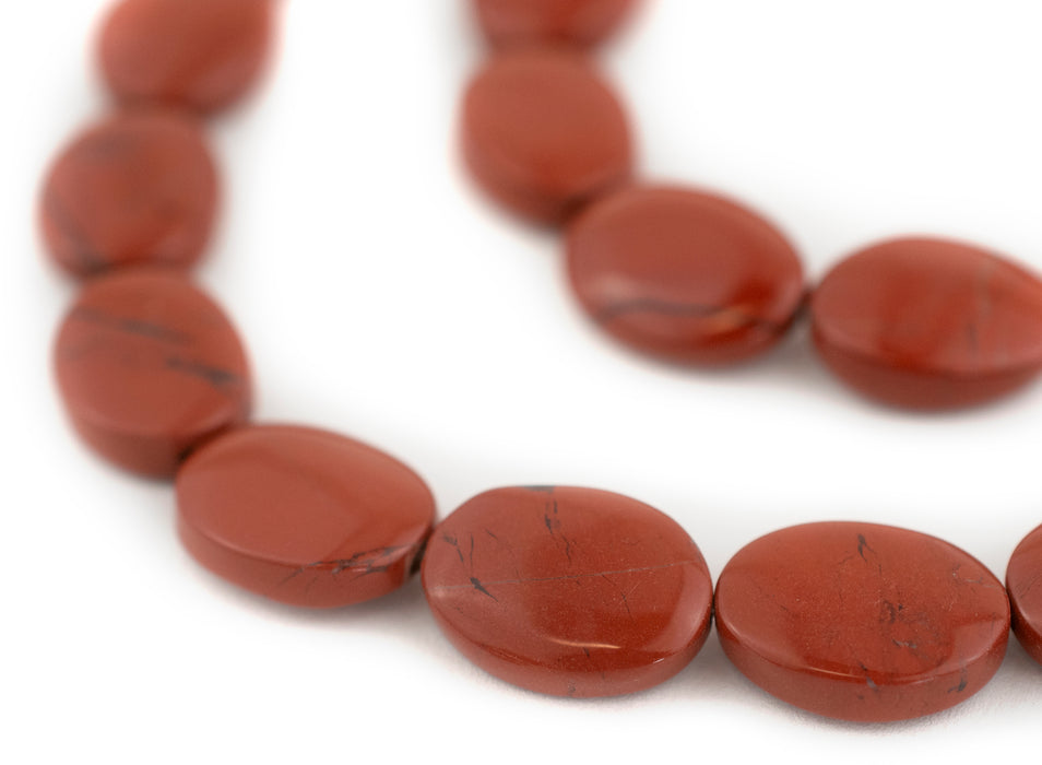 Admire these beautiful red jasper beads. Red jasper is a stone that is said to hold powerful physical and spiritual protection. Going back to the times of ancient Egypt, red jasper was considered to help with fertility, and to ward off negative energies. These beads measure approximately 15 x 12mm with a hole size of approximately <1mm. You will receive a strand measuring approximately 15" for each purchase. Multiple strands pictured. Each strand sold individually.