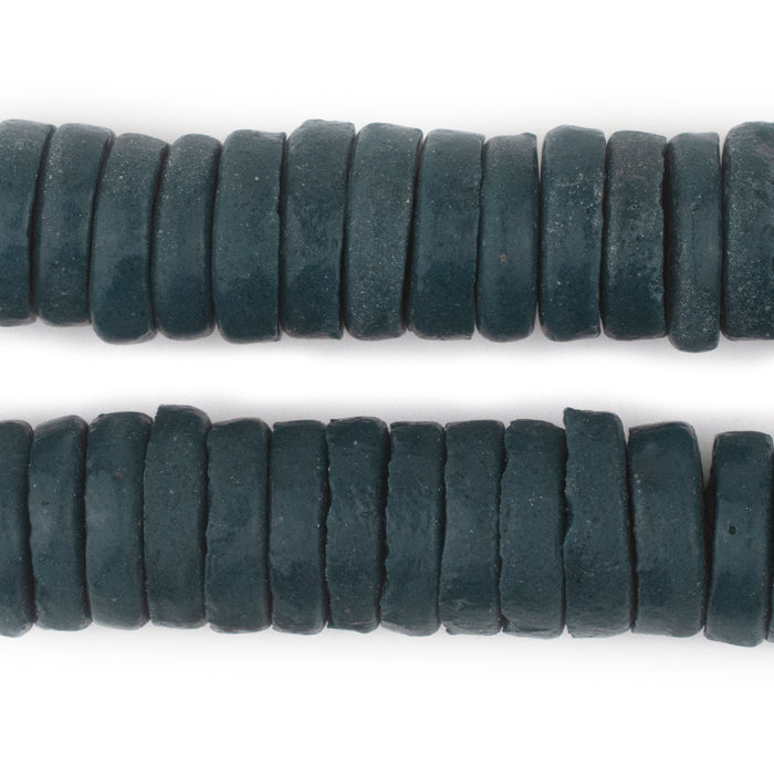 Checkout this beautiful strand of Ashanti glass saucer beads. The process of making these beads is unique to Africa and has been used for over 1000 years. Pulverized glass of various colors is poured into a clay mold, using a cassava stem for the bead's hole. The mold is placed in a furnace and heated until the glass particles congeal without actually melting and the stem burns out. The Ghanaians have been making beads in this manner since the 1600s. Each bead measures approximately 6 x 17-18mm with a hole size of approximately 3-4mm. You will receive a full strand measuring approximately 28".
