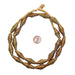 These Brass trade beads are from Ghana, Africa. Each bead is made individually through the "Lost Wax process" technique. The strand is about 28" long and the beads about 11mm in diameter and approximately 30mm. long.