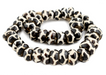 Checkout these beautiful large bone batik from Africa! They are hand dyed beads from Kenya, Africa. The dying method is known as "batik", which is a wax relief process. The design on these is an interesting "GIRAFFE" design, with the pattern going all the way around the bead. These beads are strung on sisal and could even be worn as is. The strand is approximately 26" long, and each bead is about 25mm in diameter. They are perfect for any of your beading needs! Due to the handmade nature of these beads some beads may have a wood core that is more secure than others.