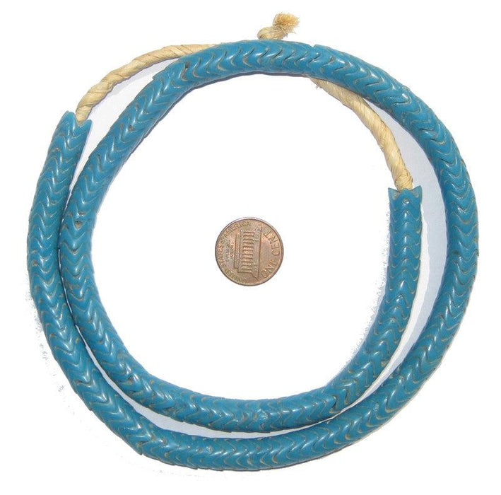 This strand of interlocking Czech glass beads is called "SNAKE" trade beads because of its similarity to the snake vertebrae. They date back from the early 1900's. These beads have been molded and the strand is in pretty good condition It has a nice turquoise color and is great to be used as spacers. The beads are approximately 9mm in diameter