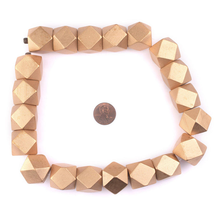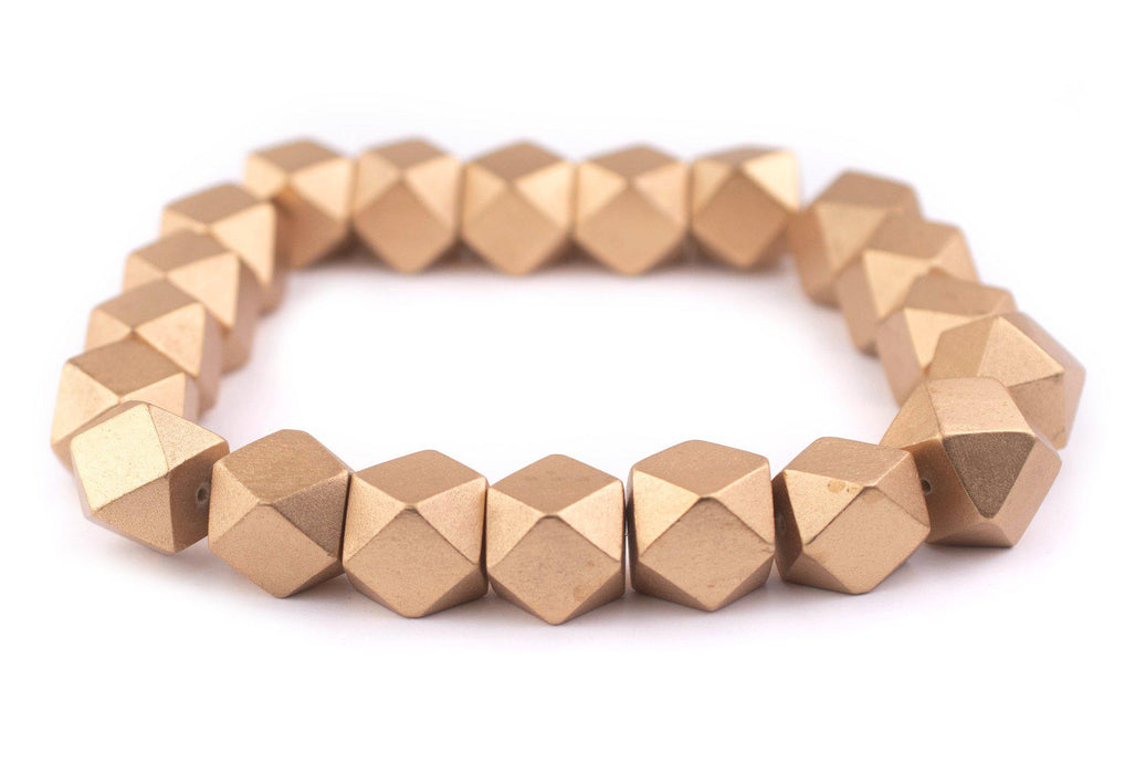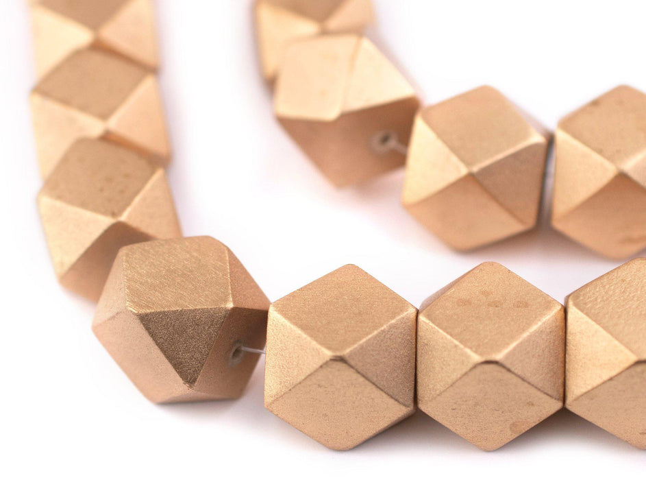Gold Diamond Cut Natural Wood Beads (20mm)