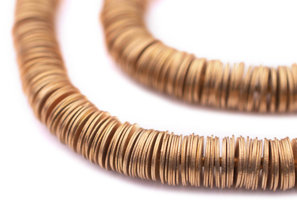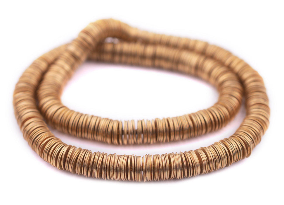 Take a moment to admire these chic gold disk heishi beads. The flat shape of these heishi beads makes them a fun and handy bead to use when creating DIY necklaces and bracelets. Each strand measures about 15" in length. Beads measure approximately 0.5 x 8mm with a roughly 1mm hole. Each strand is sold separately. Shade of gold may vary from photo. Grab a strand or two for your beading toolkit today!