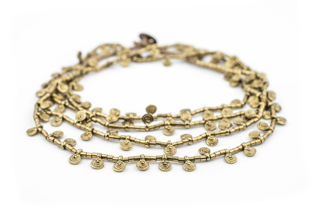 Admire this beautiful double stranded necklace of miniature Baule-style charms. These gold charm beads are great for ethnic jewelry or can be worn as is. Each necklace includes two strands totaling approximately 100 charms, PLUS additional gold spacer beads. Strands measure approximately 25-30" in length, with charms measuring approximately 10 x 7mm. Great value.