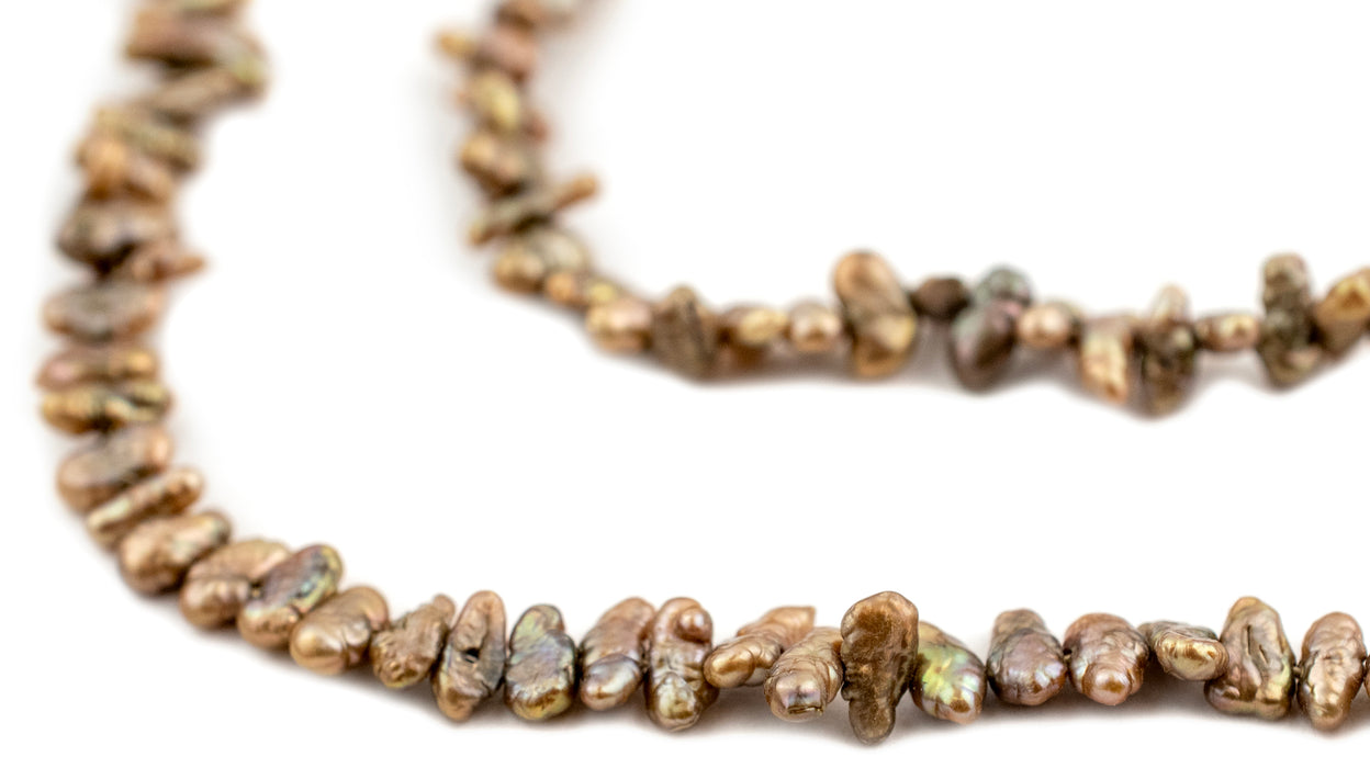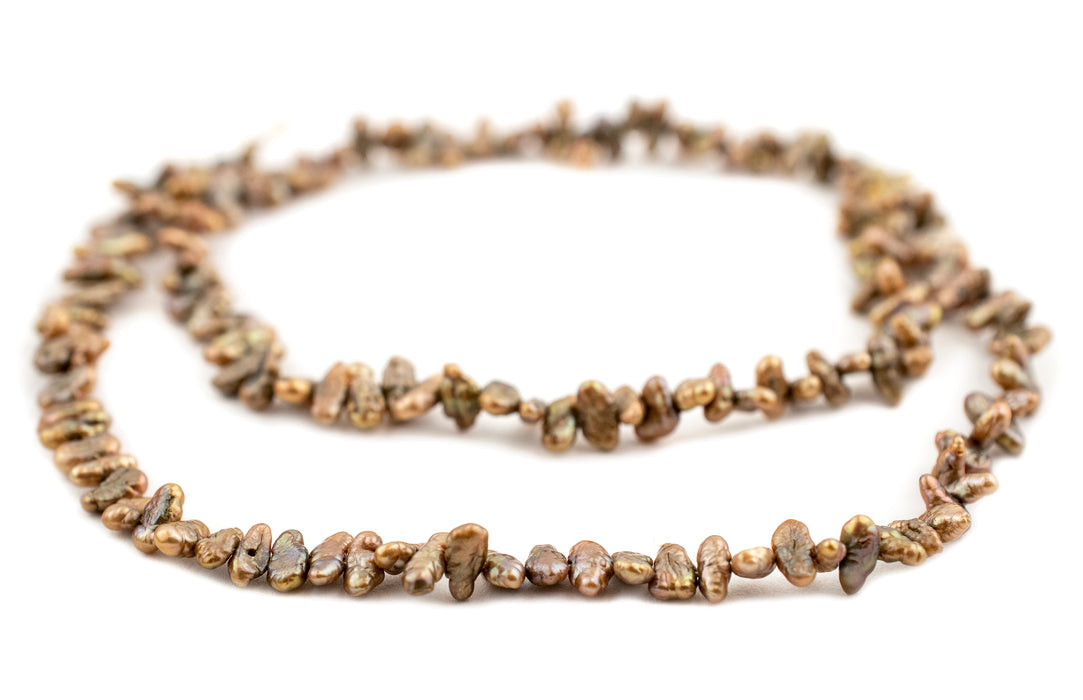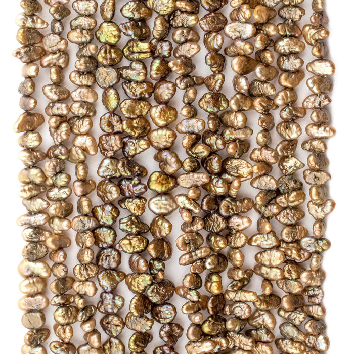 Golden Brown Vintage Japanese Pearl Chip Beads (6-8mm)