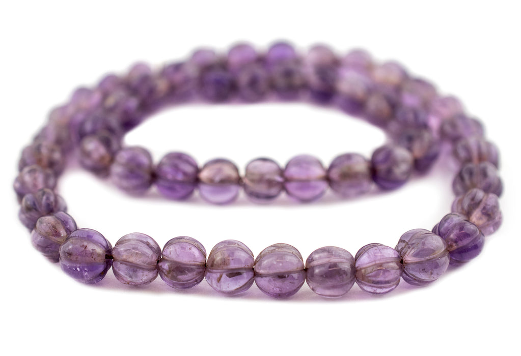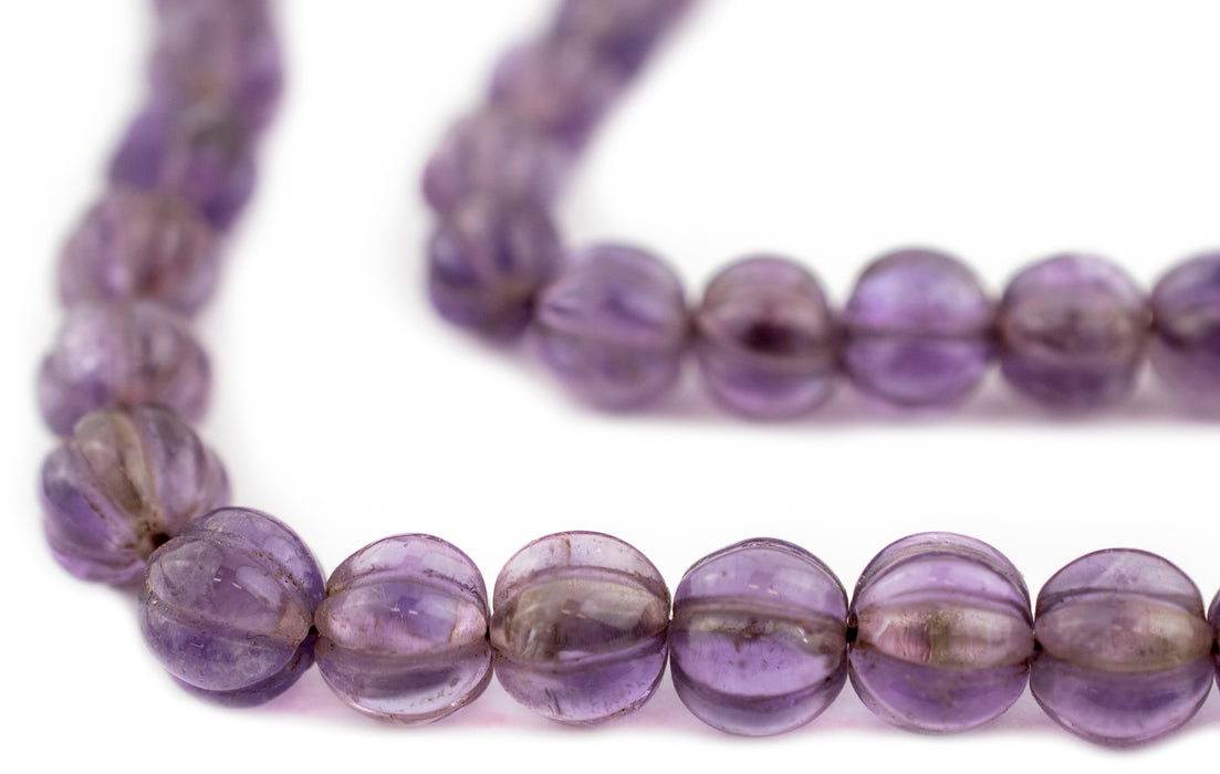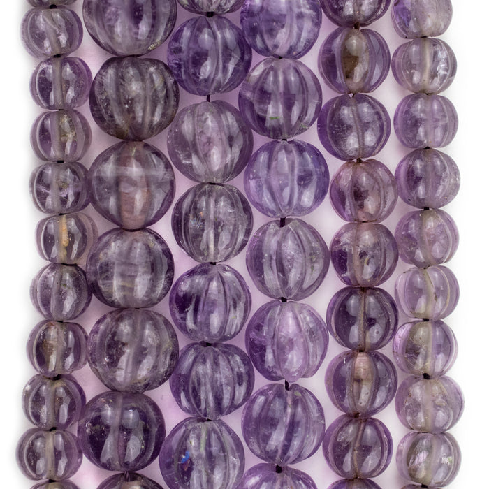 Graduated Carved Watermelon Amethyst Beads (8-14mm)