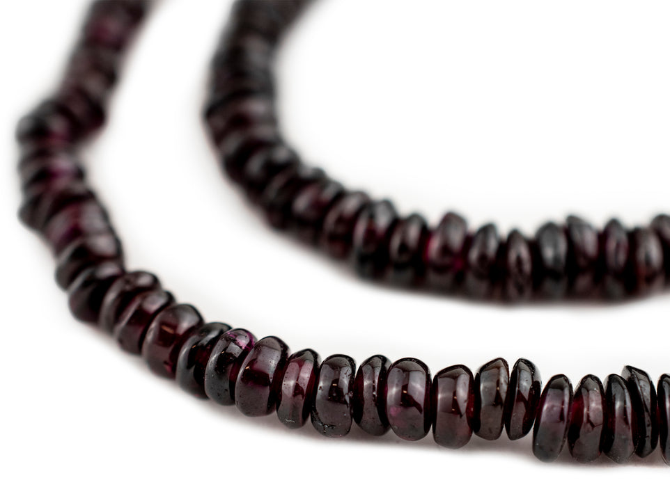 Garnet gets it name from the Latin word malogranatum which means pomegranate. In ancient times it was believed that Garnet was a great protection stone and would be worn often as an amulet to protect from evil and disasters. In the 1500s in the Czech Republic Garnet cutting techniques were perfected and the use of garnet gems in jewelry designs got more popular than ever. You will receive a full strand of beads measuring 16". Each bead measures between 2-3 x 5-9mm with a hole size of approximately 0.8mm. Available in a variety of sizes. Multiple strands may be pictured. Each strand is sold individually. Pay close attention and notice these are premium vintage stock, and not the more recent Chinese production!