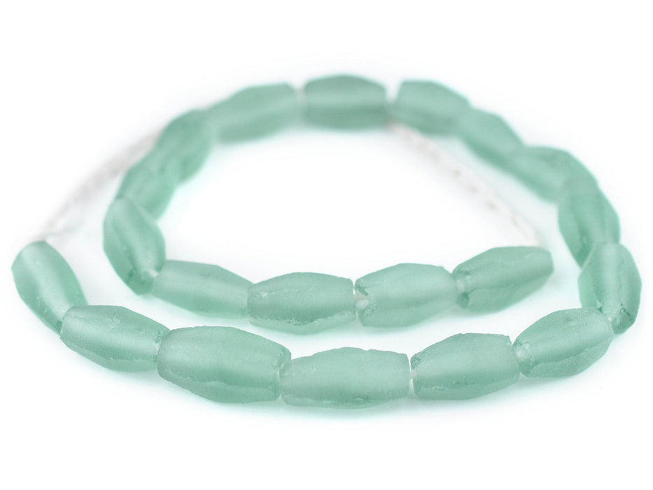 Beautiful strand of green recycled glass beads from the island of Java. These frosted beads have been fashioned in a faceted shape and come in a natural matte finish. Each bead measures approximately 19-22 x 11-12mm, with a hole size of approximately 2mm. Unique translucence let's light pass through. Available in a variety of shapes. Pick and choose and your favorite colors!