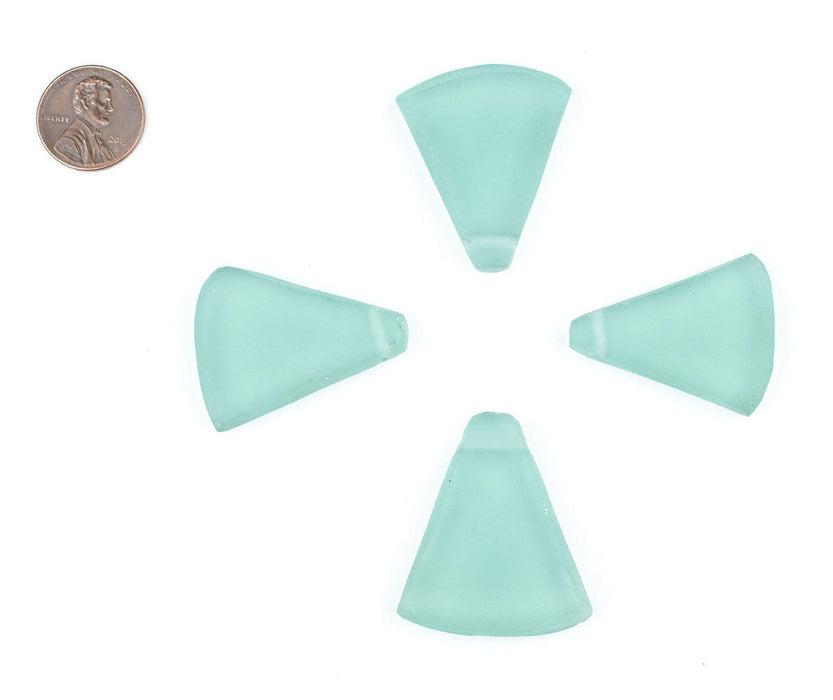 Green Aqua Triangle Sea Glass Pendants (Set of 4)