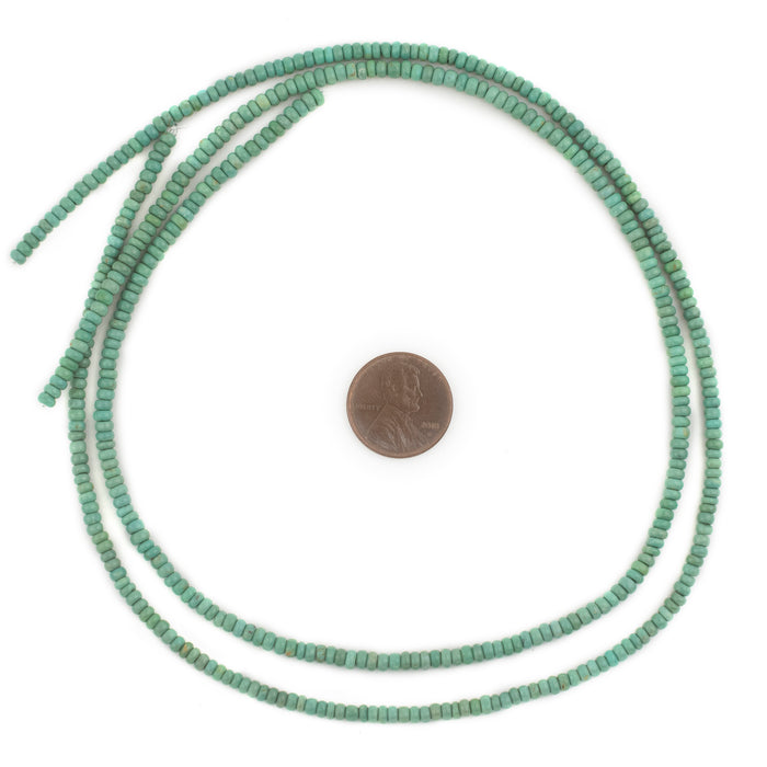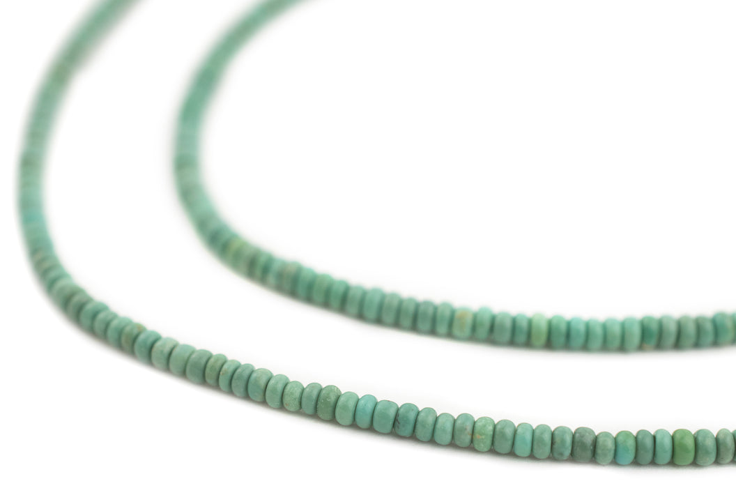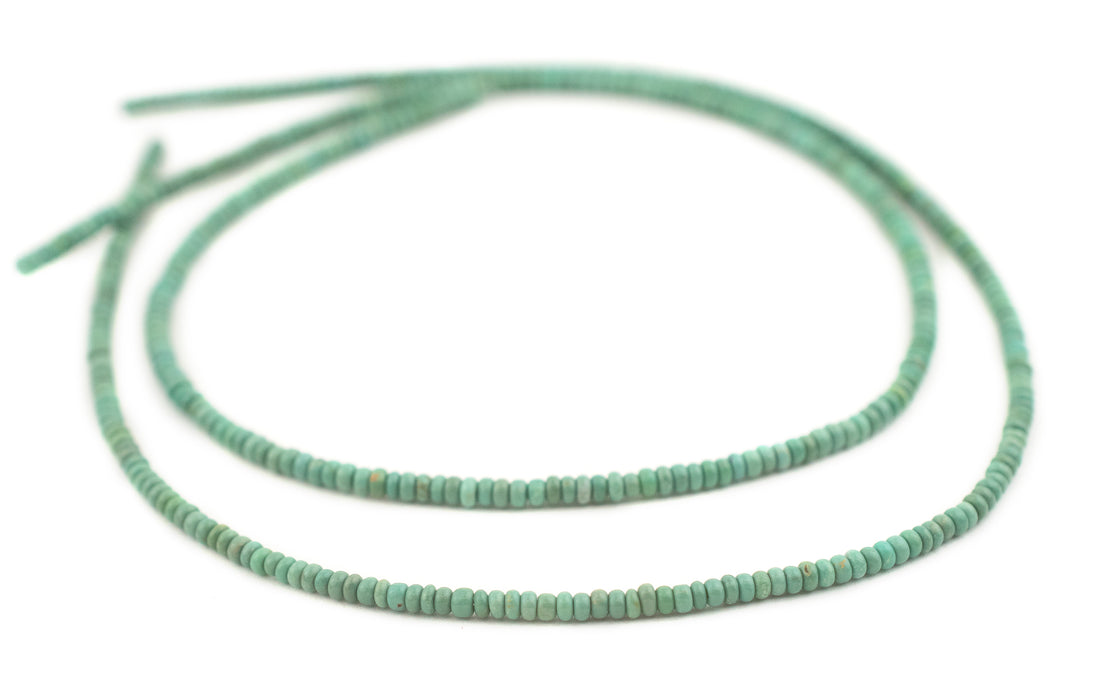 Take a look at these beautiful natural Turquoise stone beads. The brilliant tones of these polished green aqua stone beads will add a colorful touch to your custom jewelry designs. For hundreds of years, Turquoise stone has been used as a protective amulet and good luck charm. Green aqua turquoise is among the more coveted colors of turquoise stone. Each strand is 16" in length with individual beads approximately 1-2 x 3mm diameter and a hole size of <1mm. Multiple strands pictured, each is sold individually. Shade of aqua may vary slightly from photo.