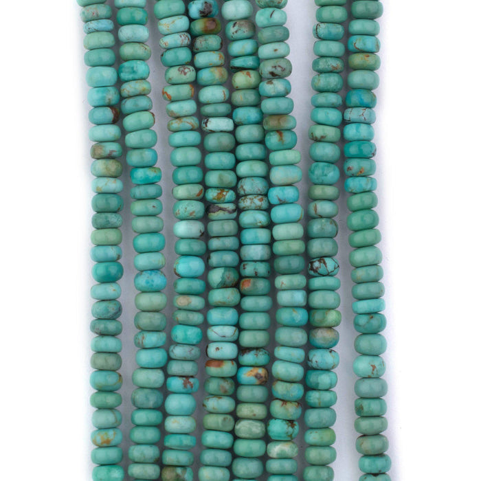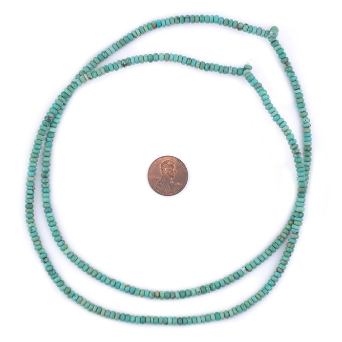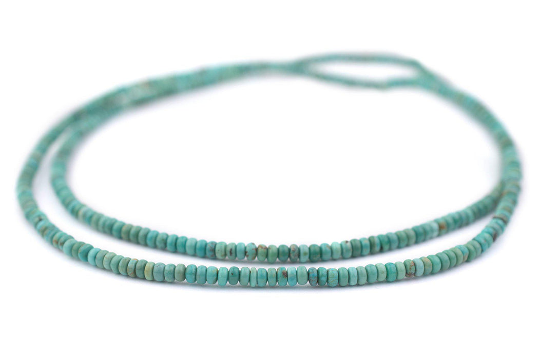 Take a look at these beautiful natural Turquoise stone beads. The brilliant tones of these polished green aqua stone beads will add a colorful touch to your custom jewelry designs. For hundreds of years, Turquoise stone has been used as a protective amulet and good luck charm. Green aqua turquoise is among the more coveted colors of turquoise stone. Each strand is 16" in length with individual beads approximately 2 x 4mm diameter and a hole size of 1mm. Multiple strands pictured, each is sold individually. Shade of aqua may vary slightly from photo.