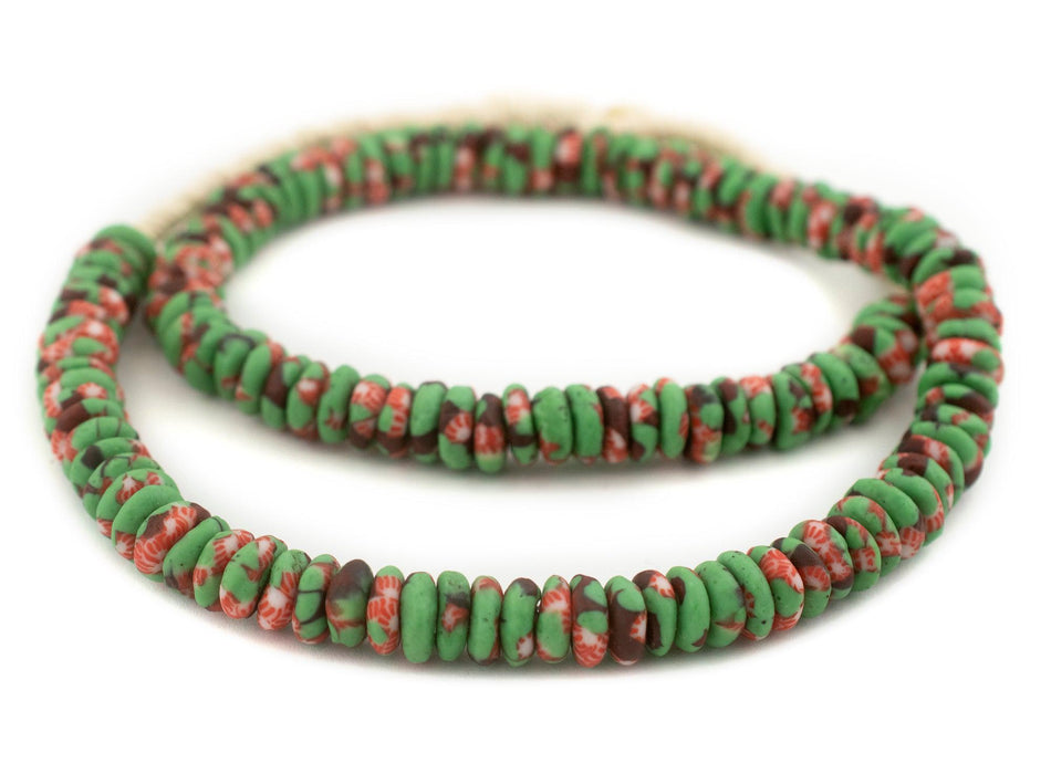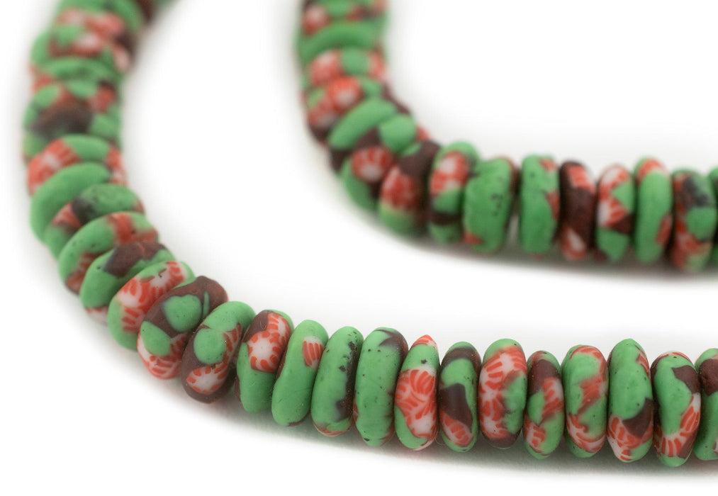 Green Candycane Fused Rondelle Recycled Glass Beads (11mm)