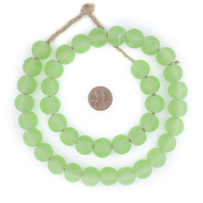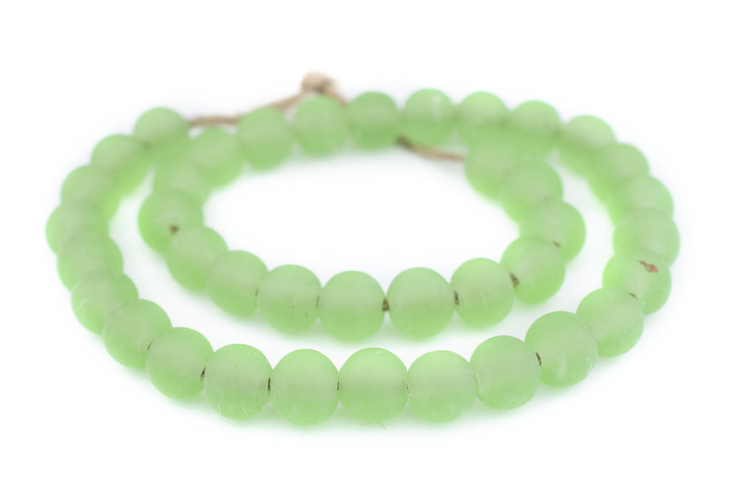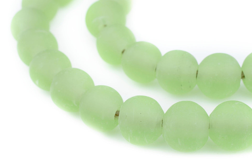 Add a spectacular touch of green to your jewelry designs with our Green Frosted Sea Glass beads. Recycled Sea Glass can add a striking translucent touch to your custom jewelry designs. Each artisan bead strand measures in at about 24" in length. Each individually handcrafted bead approximately measures in at 12-13 x 14-15mm and roughly has a 4mm bead stringing hole. Add a unique pop of green to your jewelry designs and grab a strand for yourself today!