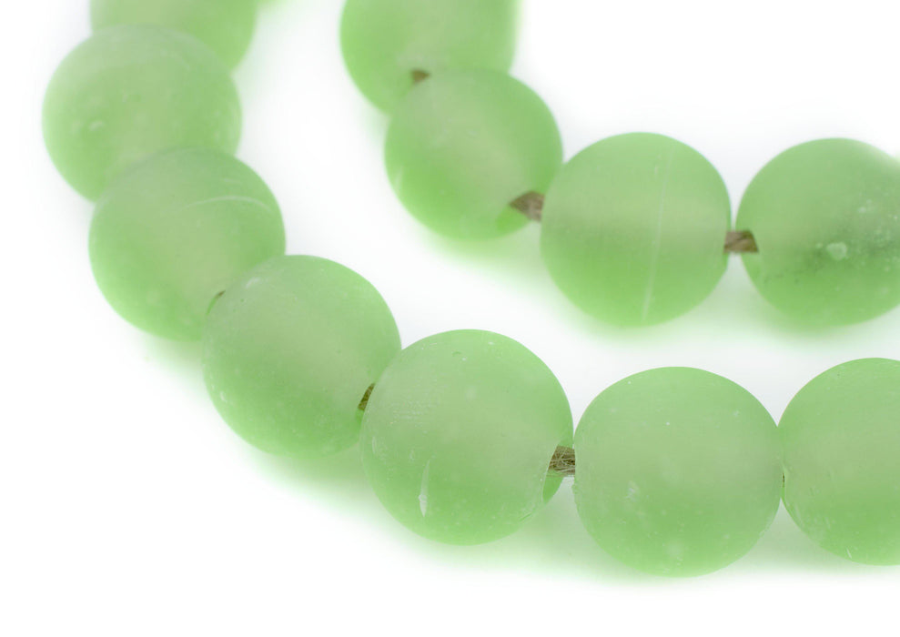Add a fresh pop of color to your jewelry designs with these amazing Green Frosted Sea Glass beads. Recycled Sea Glass beads are great for custom jewelry designs and also look great when worn as is as a necklace. Each handcrafted bead strand measures in at about 24" in length. Each artisan bead approximately measures in at 13-15 x 18-20mm and roughly has a 4mm bead stringing hole. Shape of bead may vary slightly from photo. With such great versatility and an abundance of uses you really can't go wrong with these Green Sea Glass beads. Grab a strand for yourself today!