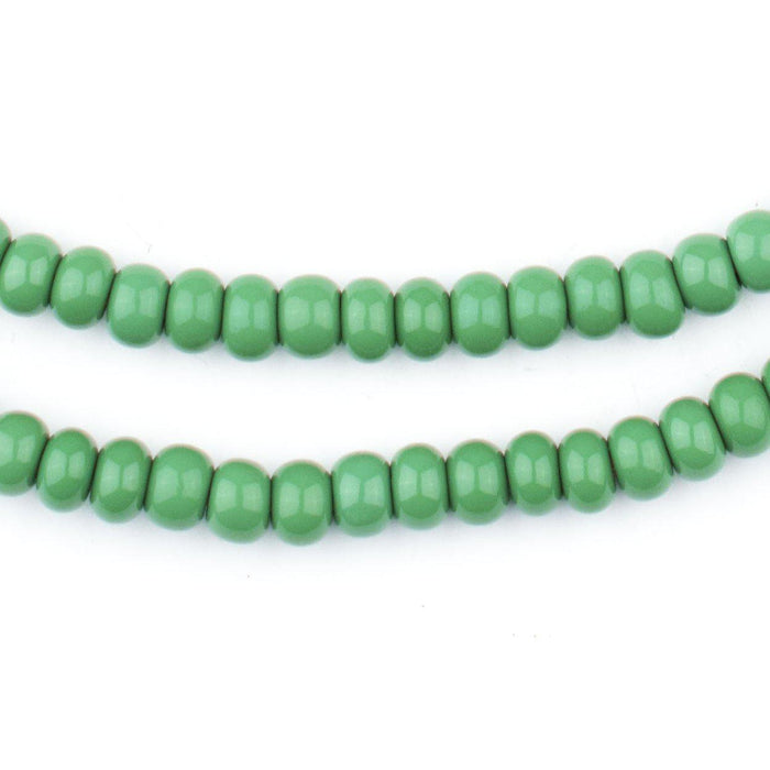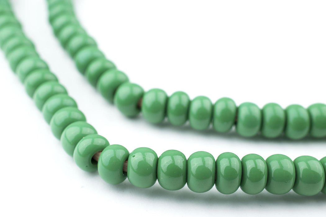 High-quality strand of green color small glass beads from Ghana. Each bead measures approximately 4 x 7mm with strand length of 27". Some variation in individual beads is shown as pictured. Use these as spacers or mix and match colors to express your unique style!