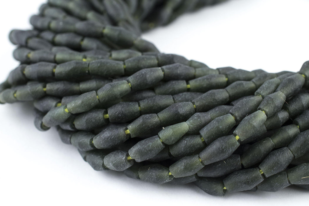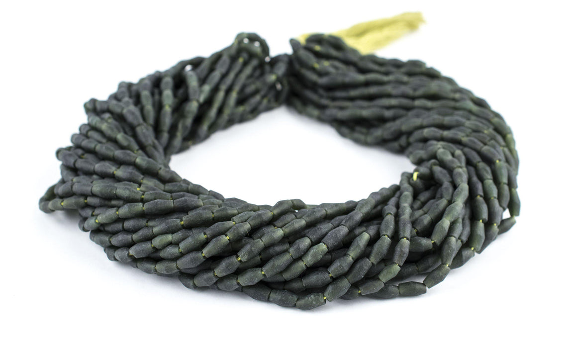 Indulge your eyes in these beautiful jade beads brought to you from the mountainous wilds of Afghanistan. The mineral rich landscape of Central Asia has been a source of treasured stones for at least three millennia. These delightful, handcrafted gemstone beads come in a special bicone shape, measuring approximately 8-9 x 4-5mm, with holes measuring 1mm. Each strand is approximately 16" long. Serpentine is a special green stone that has been valued since pre-historic times and has oftentimes been used in carvings and other ornamental objects. Serpentine is known in many cultures as associated with wisdom and is believed to imbue this quality. Multiple strands pictured. Each strand sold individually. Add these beads to your collection today!