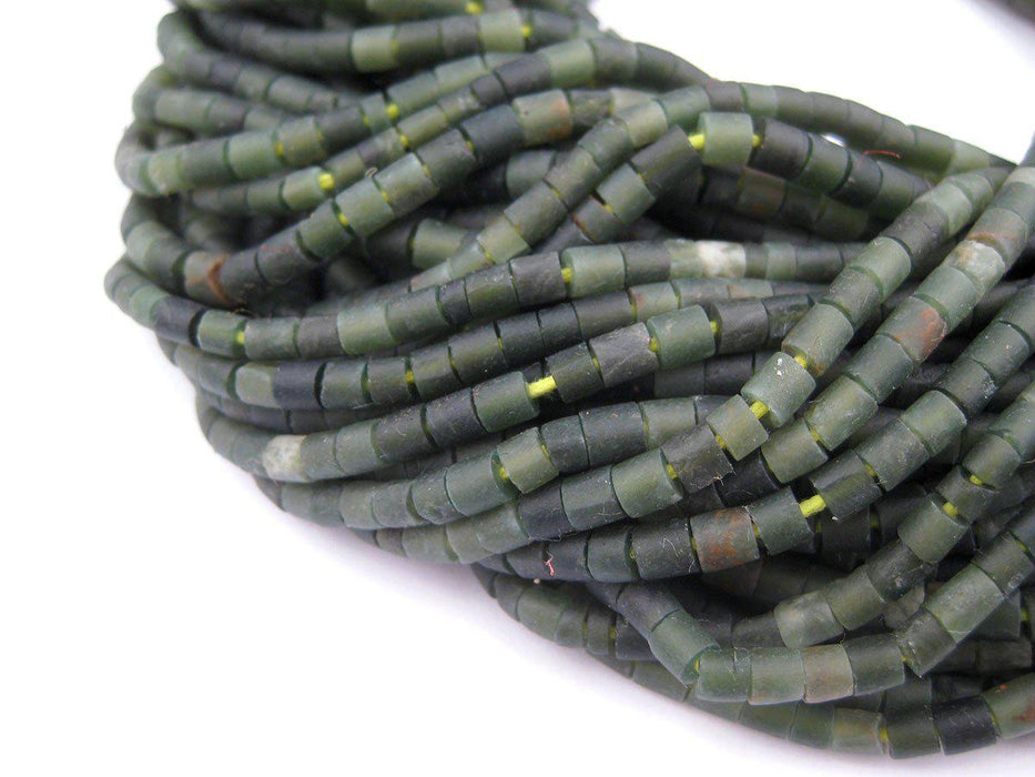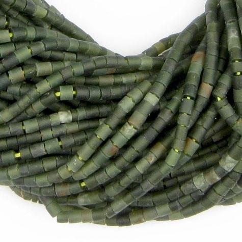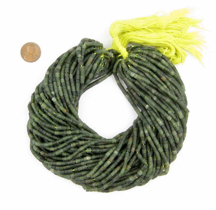 Indulge your eyes in these beautiful serpentine beads brought to you from the mountainous wilds of Afghanistan. The mineral rich landscape of Central Asia has been a source of treasured stones for at least three millennia. These delightful, handcrafted gemstone beads come in a special heishi shape, measuring approximately 3 x 4mm, with holes measuring 1mm. Each strand is approximately 14" long. Serpentine is a special green stone that has been valued since pre-historic times and has oftentimes been used in carvings and other ornamental objects. Serpentine is known in many cultures as associated with wisdom and is believed to imbue this quality. Add these beads to your collection today! Multiple strands pictured. Each strand sold individually.