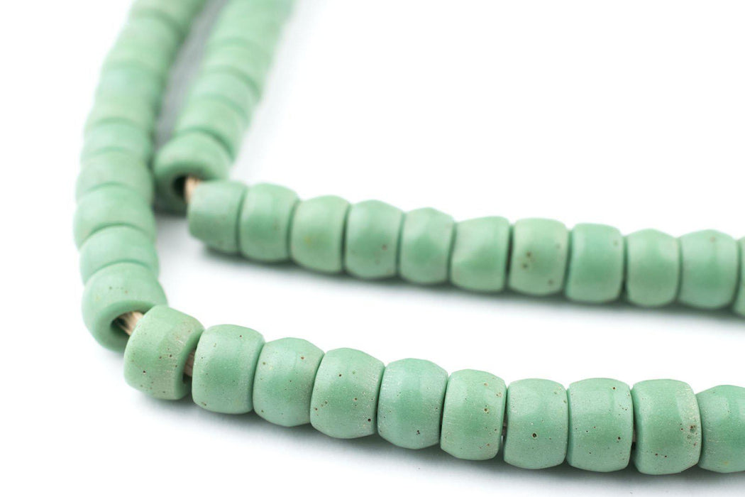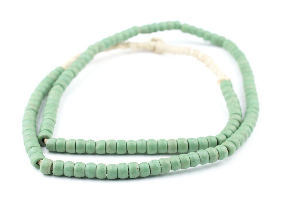 Sliced Prosser Beads, otherwise known as button beads, get their name from their unique shape. These beads originated in the former Czechoslovakia and were made by pressing molten glass. They have been traded in Africa since the late 1800's early 1900's. Several strands are available and may vary slightly in size or color from the one pictured. Each bead measures approximately 5 x 7mm, with strands measuring approximately 30" long. This would make a beautiful addition to any beader's collection. Get them before they are gone!