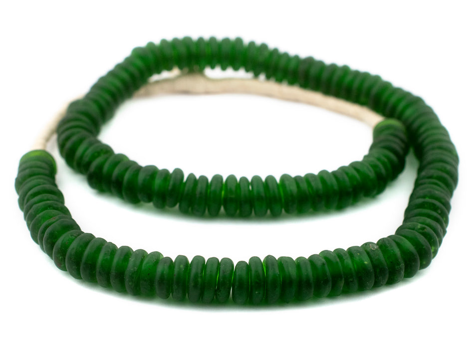 These great beads are made by the Krobo People of Ghana, Africa. Powder glass beads are made by crushing glass to a fine powder and heating it so that the particles fuse together. The glass is then poured into clay molds, with a cassava leaf stem used to make the hole. They are baked in an oven and the glass fuses and the cassava stem burns up. This technique has been used in Africa for centuries. Due to age, some beads may be chipped.