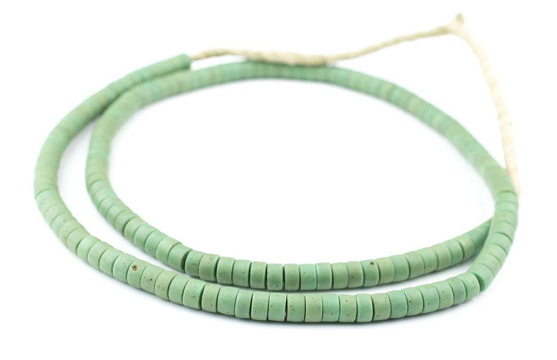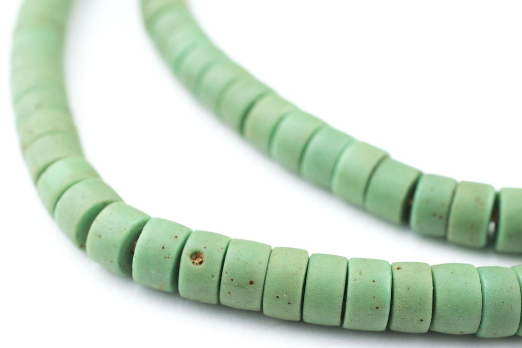 Green Sliced Prosser Button Beads (7mm) (Long Strand)