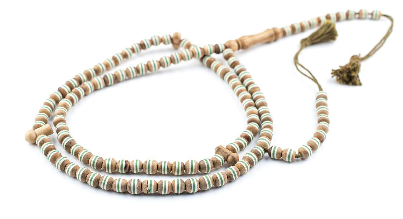 Green Stripe Inlaid Olive Wood Arabian Prayer Beads (7mm)