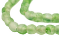 These great beads are made by the Krobo People of Ghana, Africa. Powder glass beads are made by crushing glass to a fine powder and heating it so that the particles fuse together. The glass is then poured into clay molds, with a cassava leaf stem used to make the hole. They are baked in an oven and the glass fuses and the cassava stem burns up. This technique has been used in Africa for centuries.