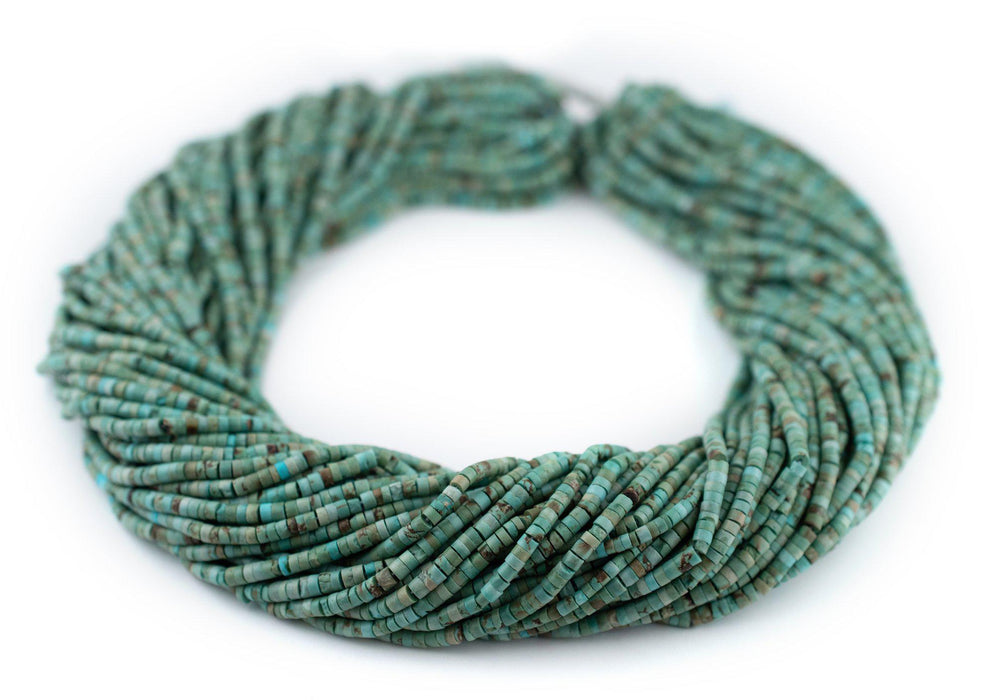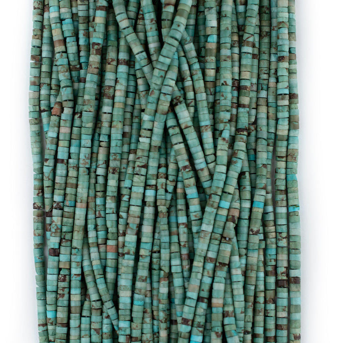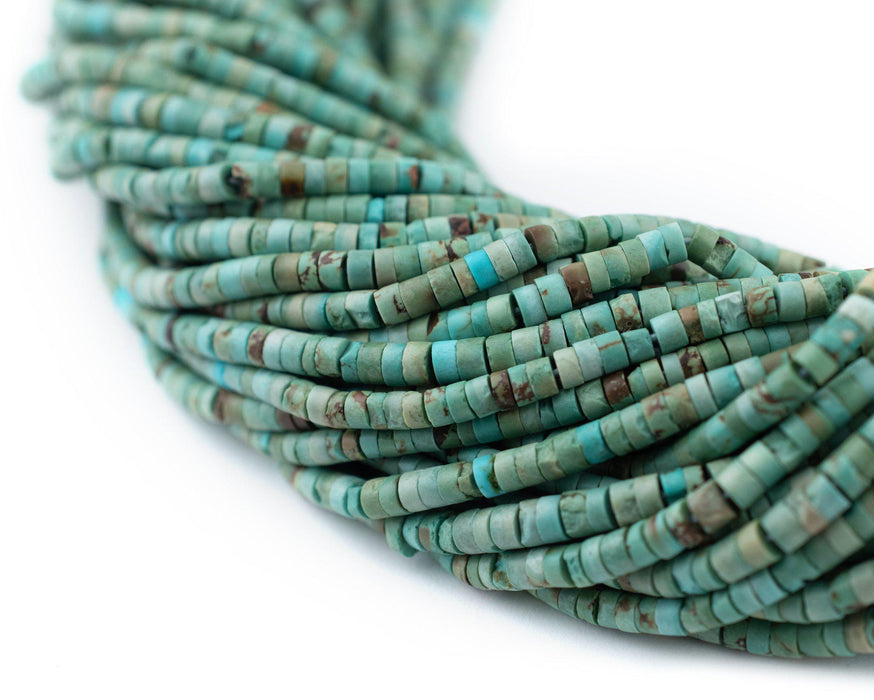 Green Turquoise Afghan Stone Cylinder Beads (3mm)