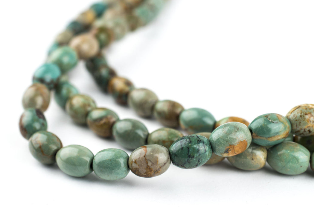 Check out this amazing strand of high-quality stone beads made of authentic turquoise. This brilliant and unique color will add an unmistakable accent to your jewelry designs. These beads are cut and polished in a beautiful oval shape. Turquoise stone has been treasured since time immemorial as a protective talisman. Interestingly, it derives it's name in the English language from the Turks who were the first to introduce it to the Western World.