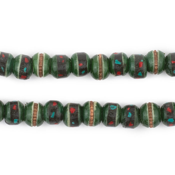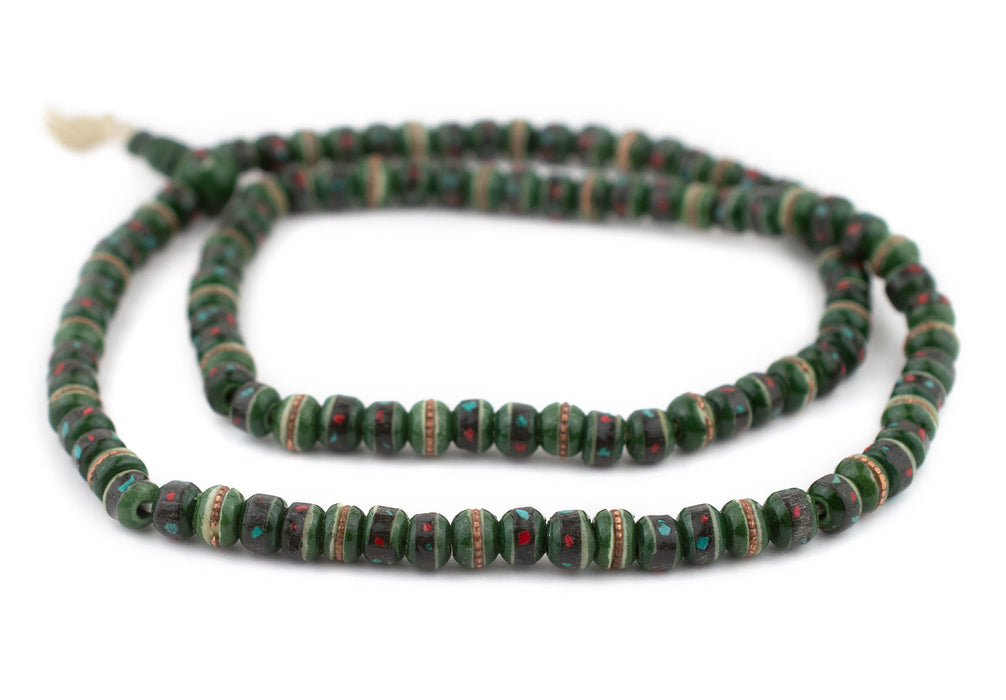 Green Vintage Inlaid Bone Prayer Beads (8mm)