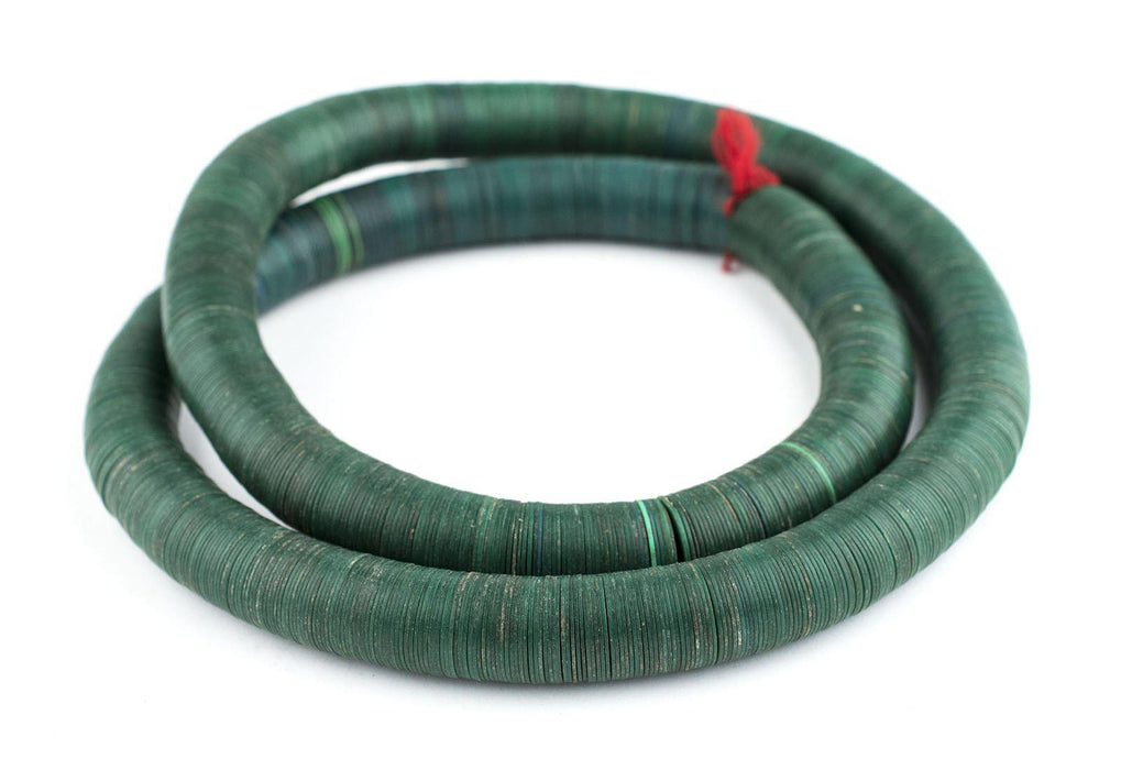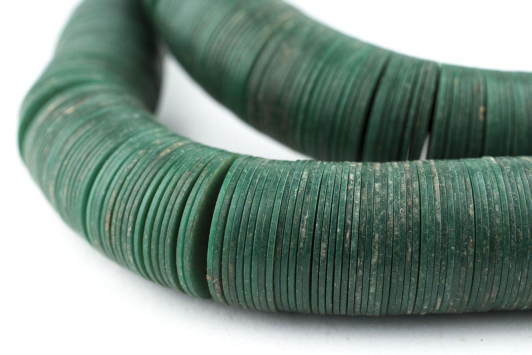 Dark Green Vintage Vinyl Phono Record Beads (14-16mm)