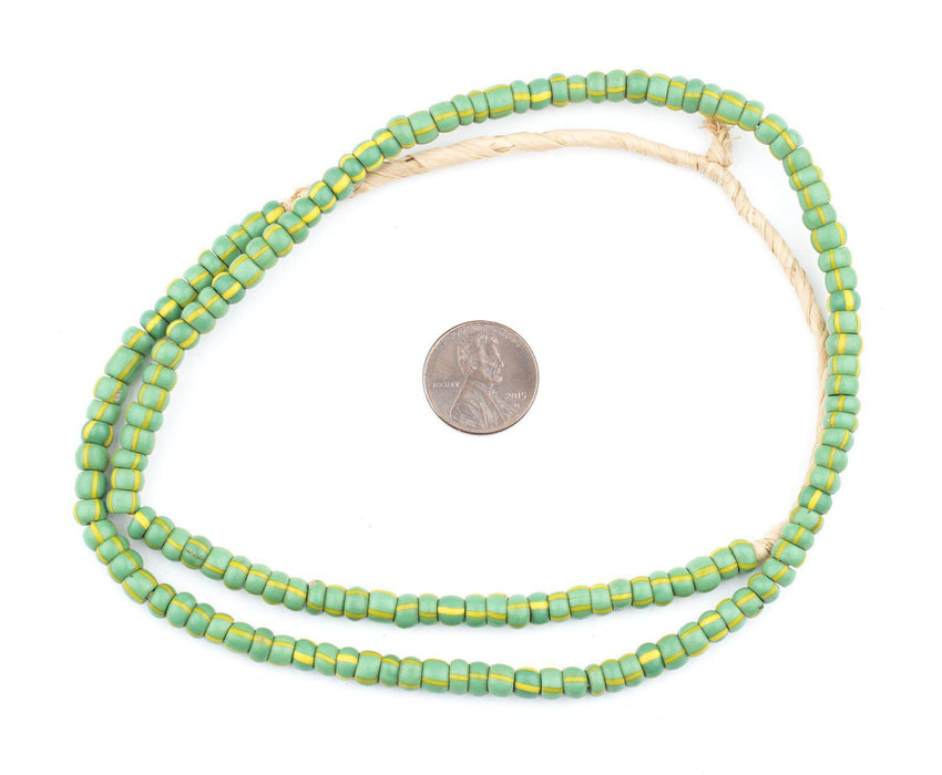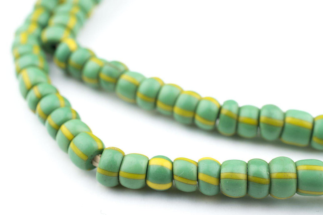 These green & yellow striped beads are made in a traditional African design, fashioned after original chevron beads. Each bead measures approximately 3-6 x 5-6mm, with hole size of 2mm. Strand length is approximately 25". Can be worn as is, or incorporated into your own creative designs!