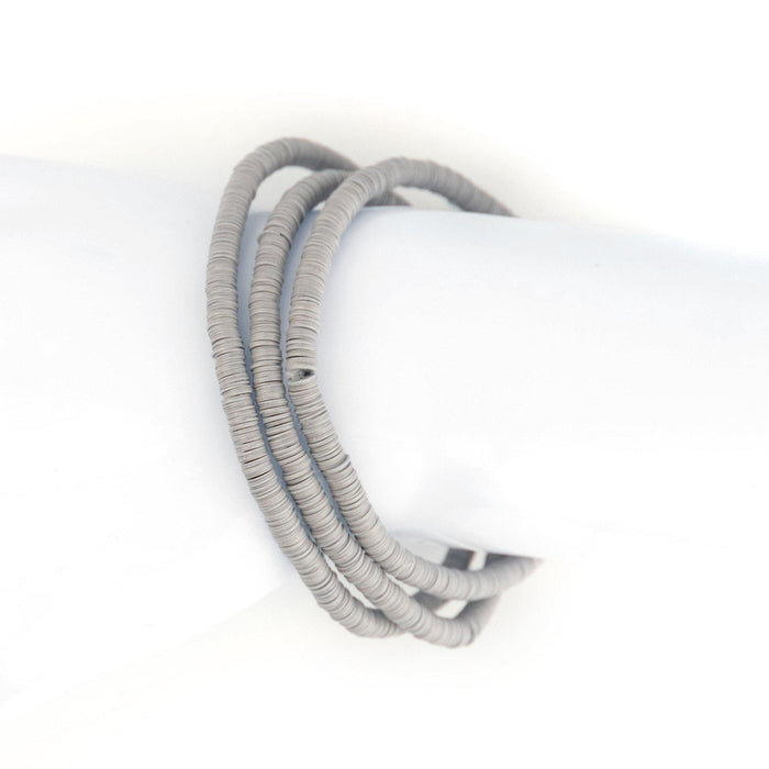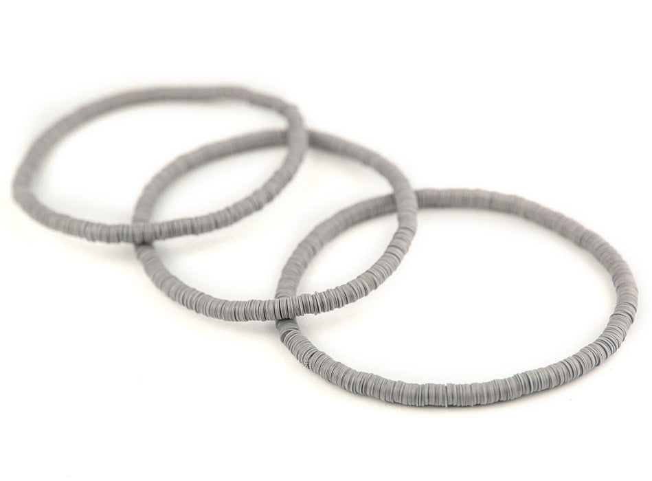 This beautiful piece of jewelry is made using vinyl beads, which are traditional to Ghanaian culture. While vinyl beads are most commonly worn around the waist, these beautiful bracelets pay tribute to West African culture while taking on a more versatile use. Each set of beads is strung on an elastic cord which will stretch over your wrist or ankle. The bracelet has an outer diameter of approximately 7.5 inches. Multiple bracelets may be pictured, however each bracelet is sold individually. Available in twenty different colors. Mix and match your favorite colors to create your own personal stack! The beads can also be repurposed into your own jewelry creations. They measure approximately 4mm in diameter with a hole size of approximately 1mm. Get yours today!
