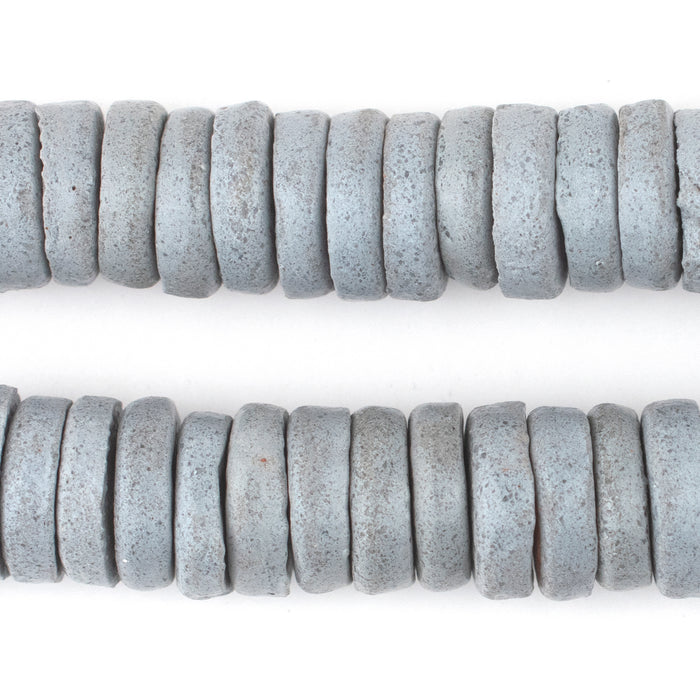Checkout this beautiful strand of Ashanti glass saucer beads. The process of making these beads is unique to Africa and has been used for over 1000 years. Pulverized glass of various colors is poured into a clay mold, using a cassava stem for the bead's hole. The mold is placed in a furnace and heated until the glass particles congeal without actually melting and the stem burns out. The Ghanaians have been making beads in this manner since the 1600s. Each bead measures approximately 6 x 17-18mm with a hole size of approximately 3-4mm. You will receive a full strand measuring approximately 28".