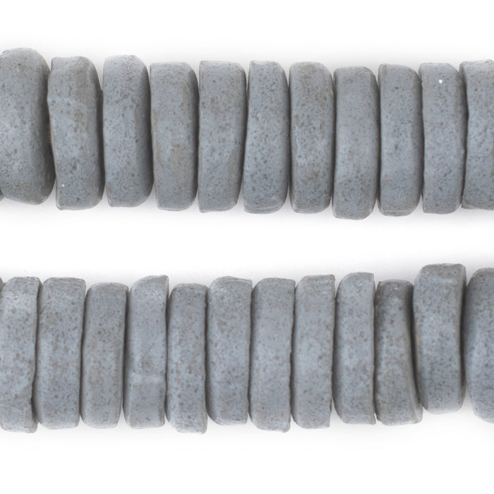 Checkout this beautiful strand of Ashanti glass disk beads. The process of making these beads is unique to Africa and has been used for over 1000 years. Pulverized glass of various colors is poured into a clay mold, using a cassava stem for the bead's hole. The mold is placed in a furnace and heated until the glass particles congeal without actually melting and the stem burns out. The Ghanaians have been making beads in this manner since the 1600s. Each bead measures approximately 6 x 19-20mm with a hole size of approximately 3-4mm. You will receive a full strand measuring approximately 28". Available in many colors.
