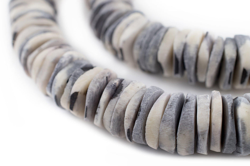 Splotchy Grey Coconut Bone Heishi Beads (18mm)
