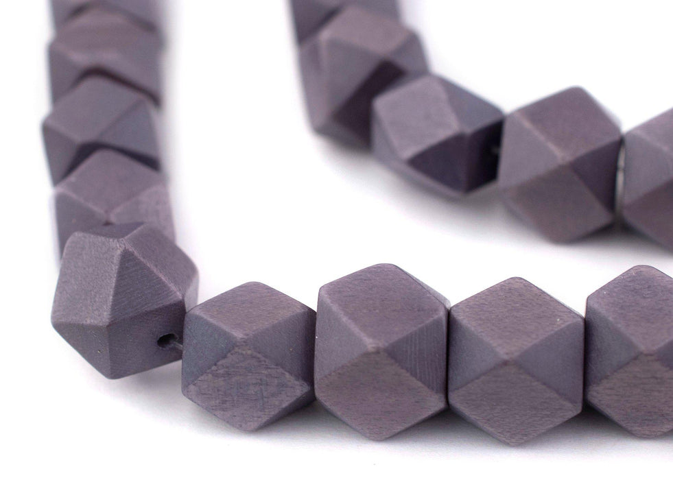 Grey Diamond Cut Natural Wood Beads (12mm)