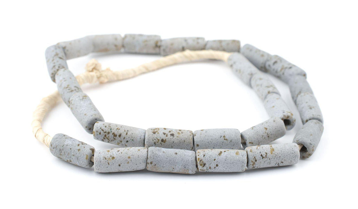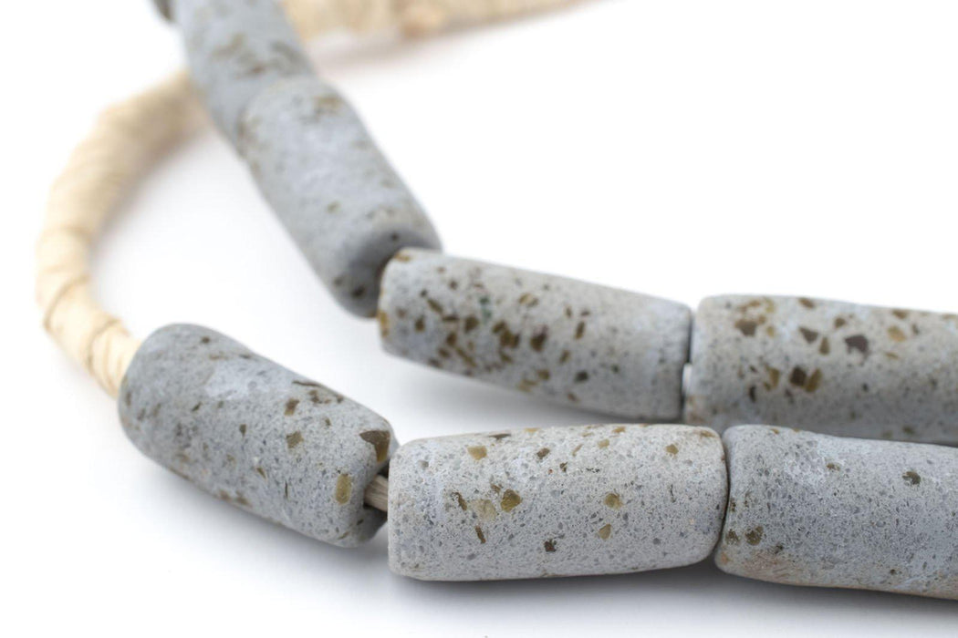 Grey Granite-Style Ghana Glass Beads (25x10mm)
