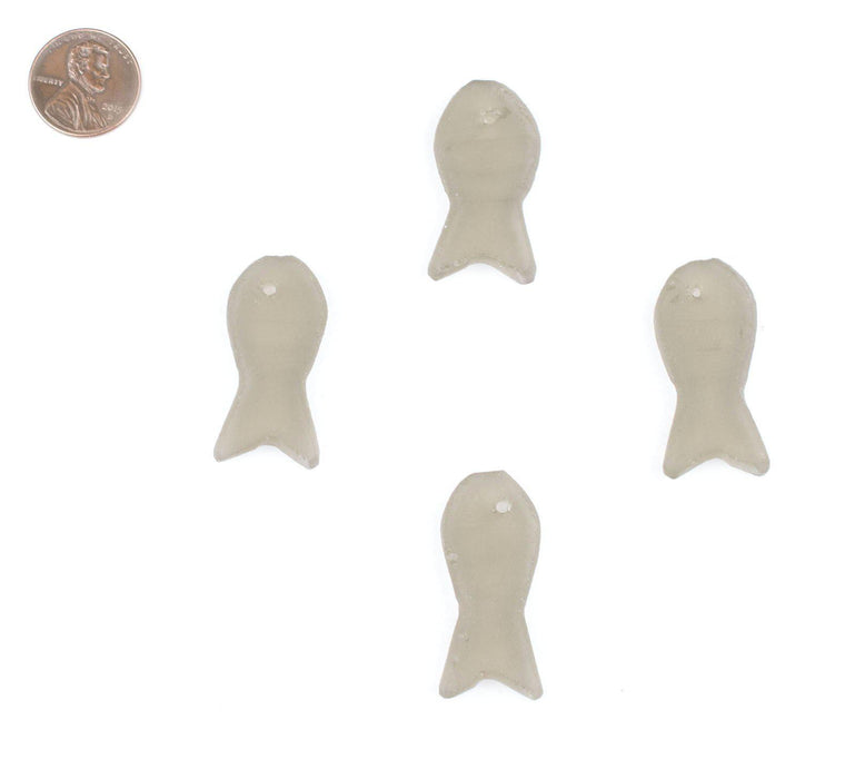Grey Sea Glass Fish Pendants (Set of 4)
