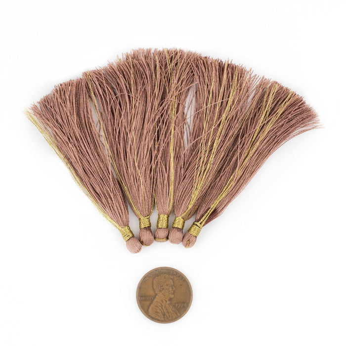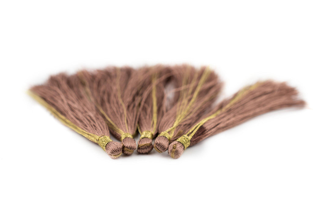 Look no further! These genuine silk tassels have been individually handmade by an expert of the craft. They are crafted from authentic Indian silk which is highly refined and world renown. Specially made for The Bead Chest, each high quality tassel is wrapped with a gold thread. Available in 20+ fun colors and 4 different sizes, you’ll find in our collection a tassel for almost every need. Each purchase of these brown tassels will ship as a pack of five pieces. Individual tassels measure approximately 6 centimeters (2.4 inches) in length. May be used in jewelry designs, home decor, and art projects galore. Mix and match your favorite styles today!