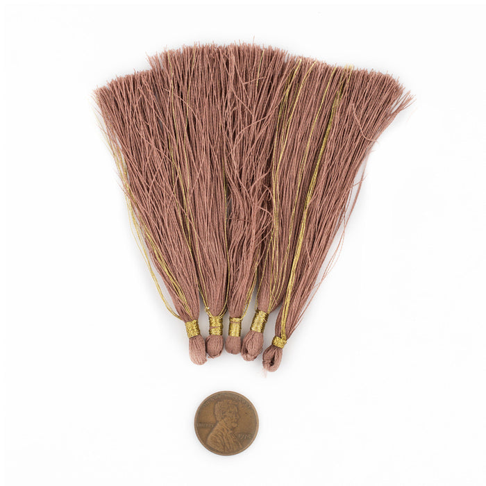 Look no further! These genuine silk tassels have been individually handmade by an expert of the craft. They are crafted from authentic Indian silk which is highly refined and world renown. Specially made for The Bead Chest, each high quality tassel is wrapped with a gold thread. Available in 20+ fun colors and 4 different sizes, you’ll find in our collection a tassel for almost every need. Each purchase of these brown tassels will ship as a pack of five pieces. Individual tassels measure approximately 9cm or 3.5 inches in length. May be used in jewelry designs, home decor, and art projects galore. Mix and match your favorite styles today!