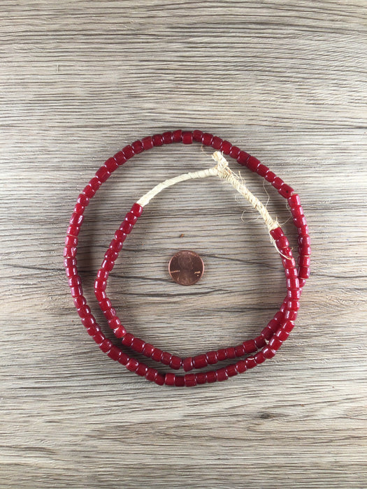 Hidden Gems: Vintage Red Cylindrical White Heart Beads