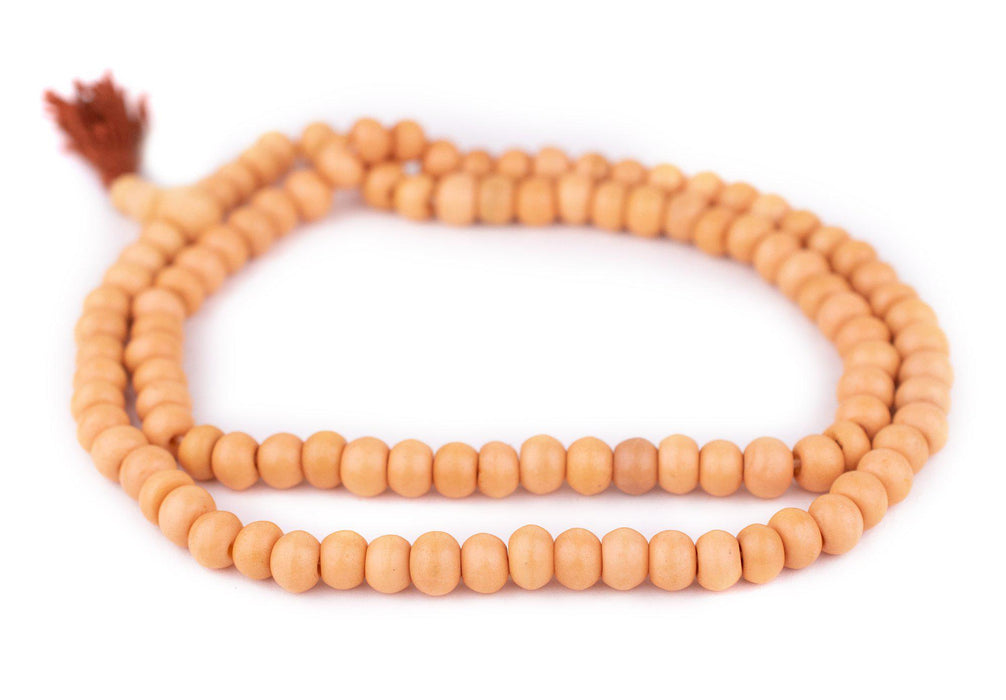 This strand of authentic Mala beads is a native craft of Nepal. Fashioned from repurposed bone, these prayer beads have been styled in a warm honey-colored tone. The beads have been strung in a traditional 108 bead format and as such, may be used for meditation, worn as is, or the individual beads can be used in your original jewelry designs. Each bead measures approximately 6mm wide by 8mm in diameter with a hole size of approximately 2mm. You will receive one full 28" strand with each purchase. Get yours today!
